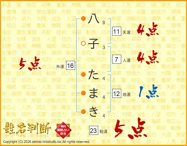 八子たまきさんの総運は23画の5点!