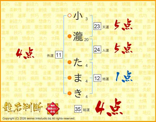 小瀧たまきさんの外運は11画の4点!