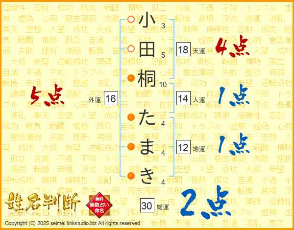 小(3画)田(5画)桐(10画) た(4画)ま(4画)き(4画)