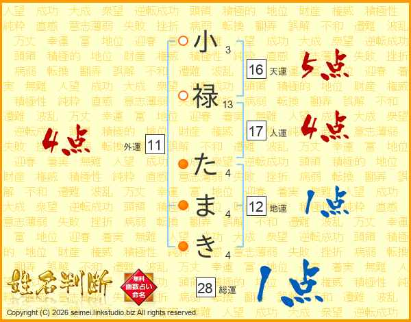小禄たまきさんの外運は11画の4点!