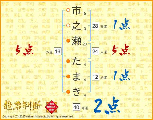 市之瀬たまきさんの総運は40画の2点!