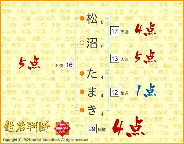 松沼たまきさんの総運は29画の4点!