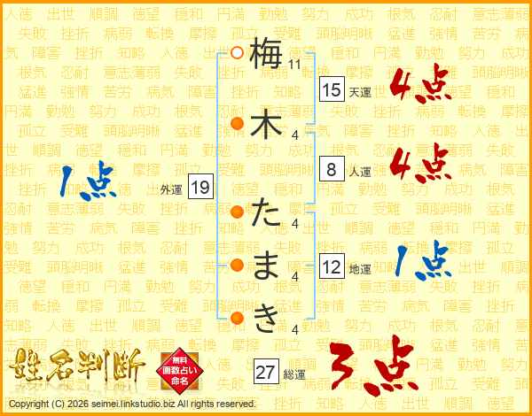 梅木たまきさんの外運は19画の1点!