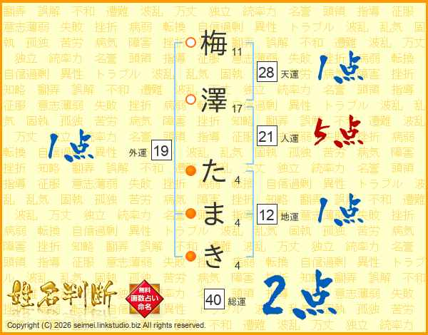 梅澤たまきさんの外運は19画の1点!