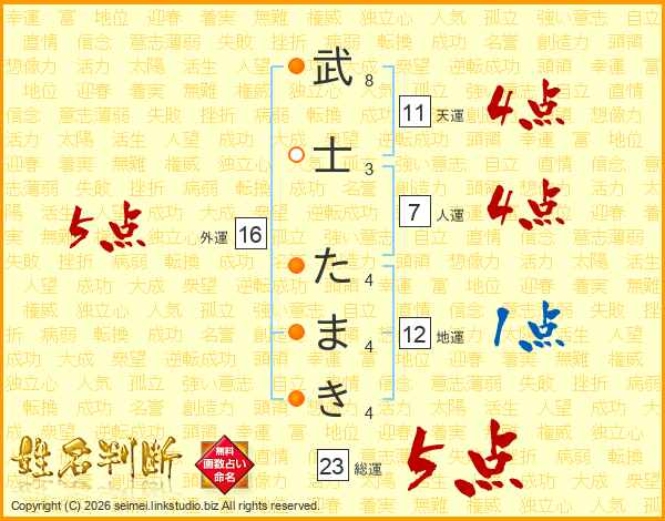 武士たまきさんの外運は16画の5点!