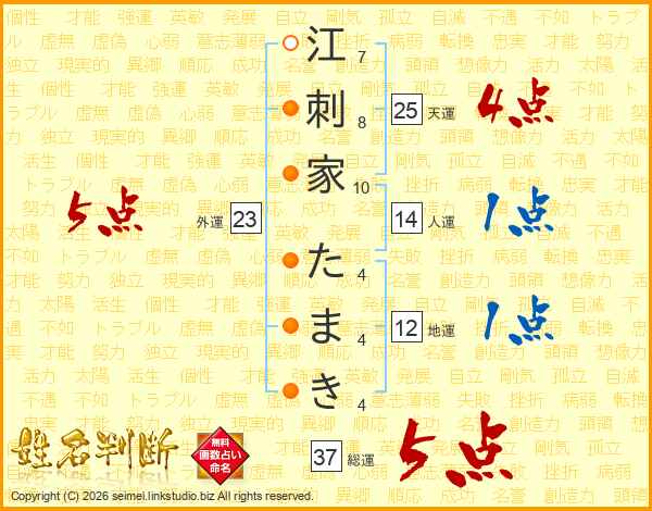 江(7画)刺(8画)家(10画) た(4画)ま(4画)き(4画)