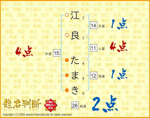 江良たまきさんの総運は26画の2点!