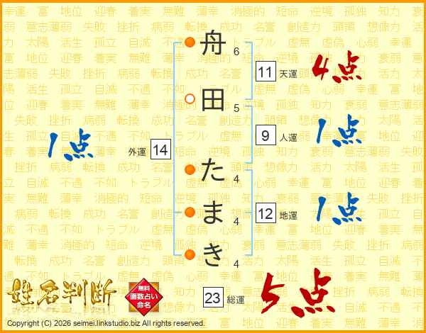 舟(6画)田(5画) た(4画)ま(4画)き(4画)
