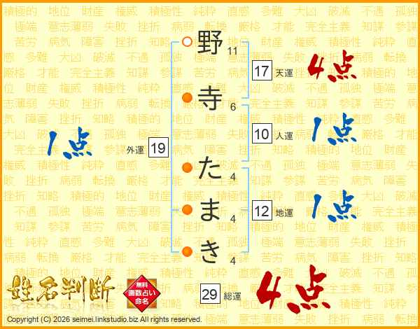 野寺たまきさんの総運は29画の4点!