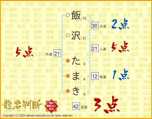 飯沢たまきさんの総運は42画の3点!