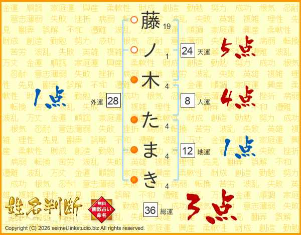 藤ノ木たまきさんの外運は28画の1点!