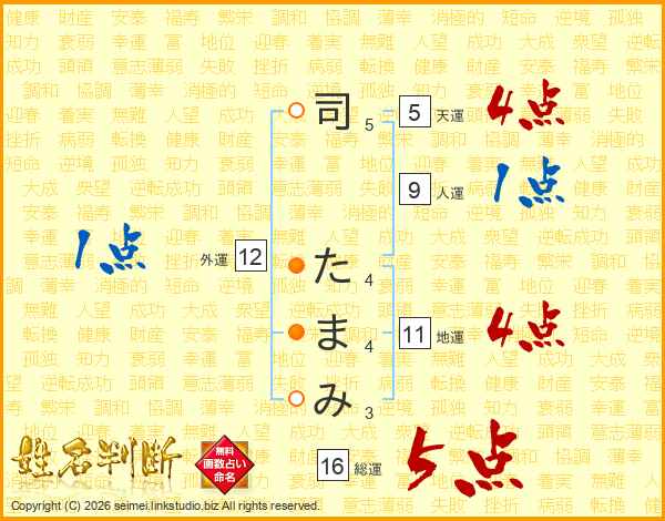 司たまみさんの総運は16画の5点!