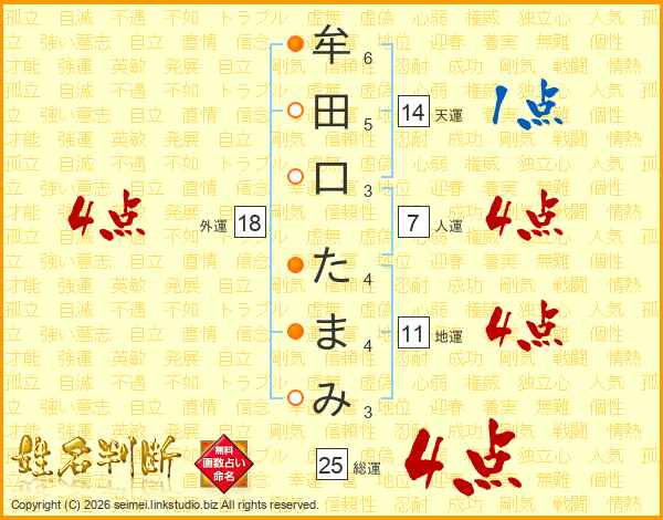 牟(6画)田(5画)口(3画) た(4画)ま(4画)み(3画)