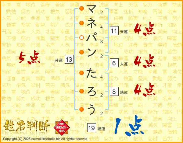 マネパンたろうさんの総運は19画の1点!