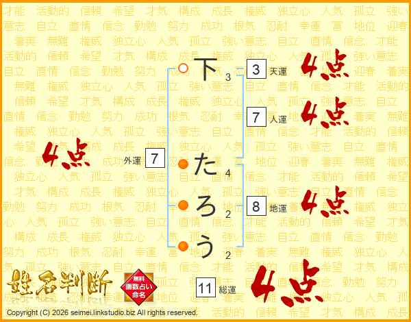 下たろうさんの総運は11画の4点!