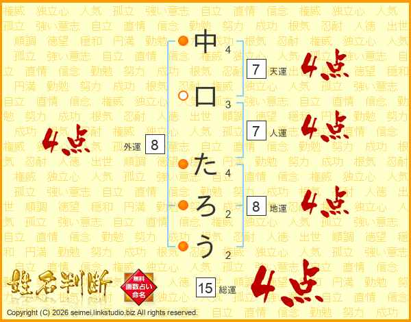 中口たろうさんの総運は15画の4点!