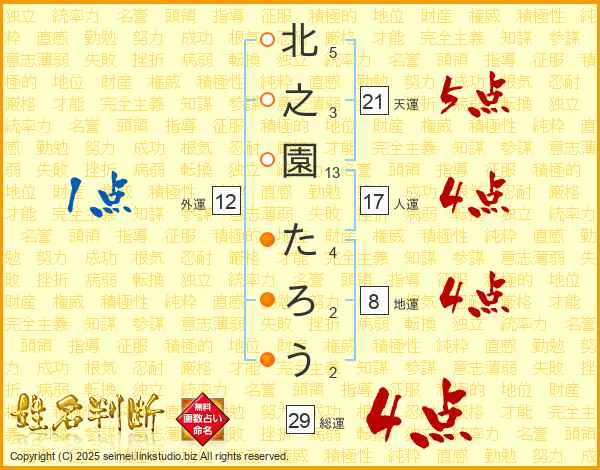 北之園たろうさんの総運は29画の4点!