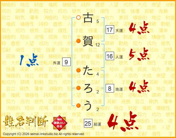 古賀たろうさんの総運は25画の4点!