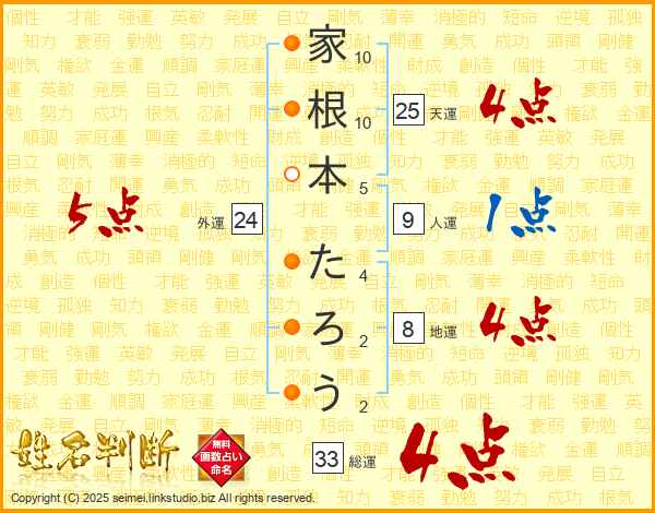 家根本たろうさんの総運は33画の4点!