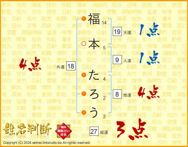 福本たろうさんの総運は27画の3点!