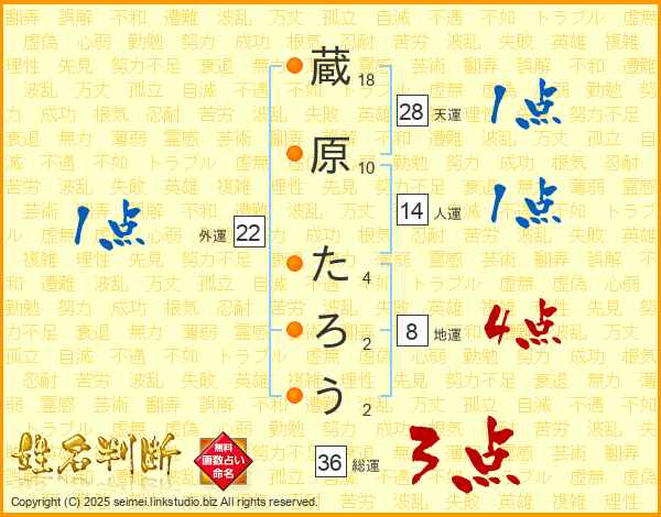 蔵原たろうさんの総運は36画の3点!