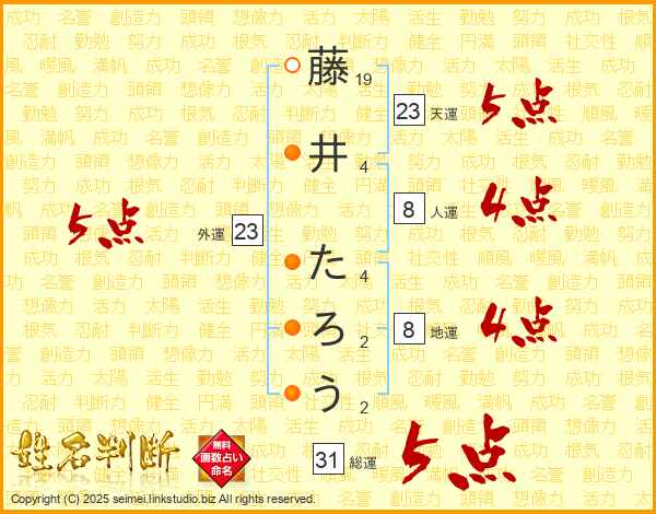 藤(19画)井(4画) た(4画)ろ(2画)う(2画)