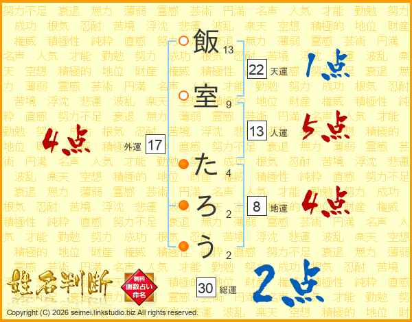 飯室たろうさんの総運は30画の2点!