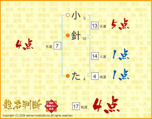 小針たさんの総運は17画の4点!