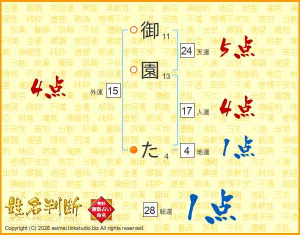 御園たさんの総運は28画の1点!