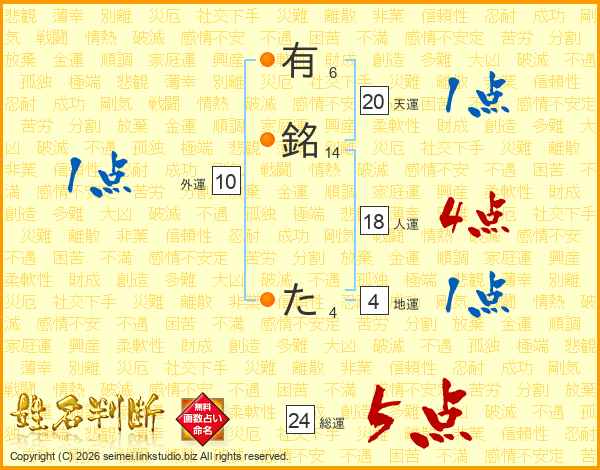有銘たさんの総運は24画の5点!