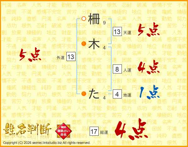 柵木たさんの総運は17画の4点!