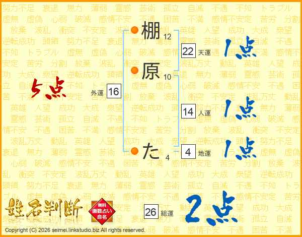 棚原たさんの総運は26画の2点!