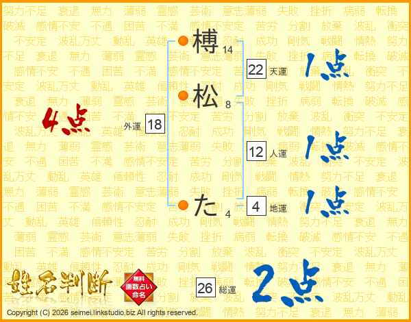 榑松たさんの総運は26画の2点!