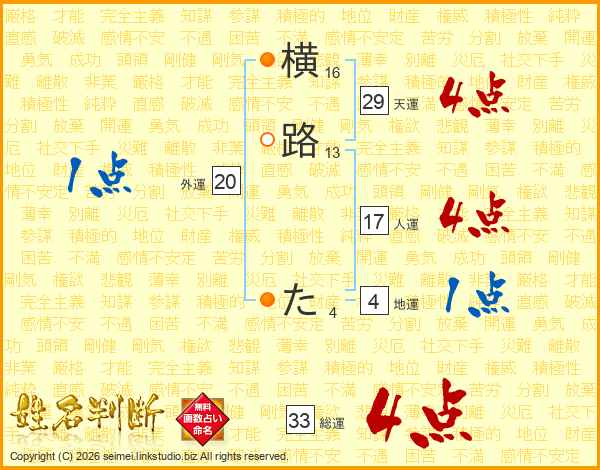 横路たさんの総運は33画の4点!