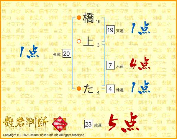 橋上たさんの人運は7画の4点