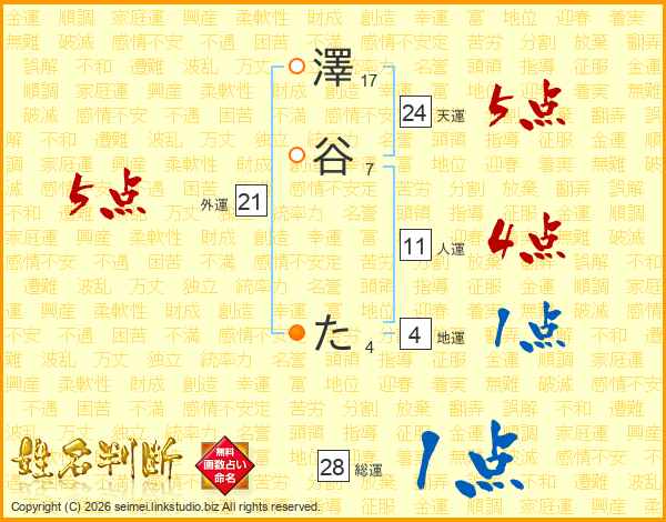 澤谷たさんの総運は28画の1点!
