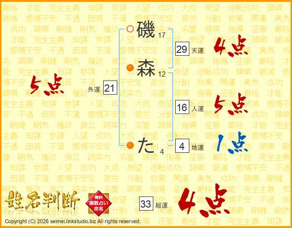磯森たさんの総運は33画の4点!