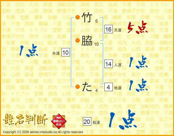 竹脇たさんの総運は20画の1点!