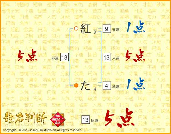 紅たさんの総運は13画の5点!