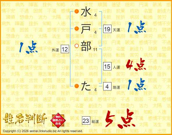 水戸部たさんの総運は23画の5点!