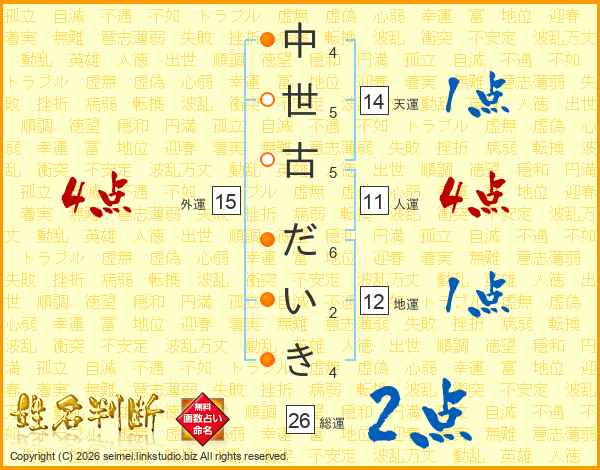 中(4画)世(5画)古(5画) だ(6画)い(2画)き(4画)