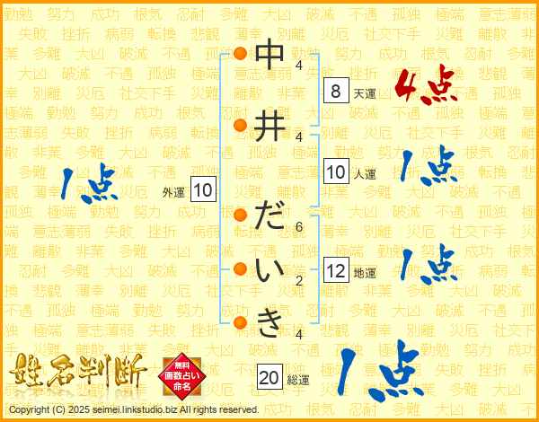 中(4画)井(4画) だ(6画)い(2画)き(4画)