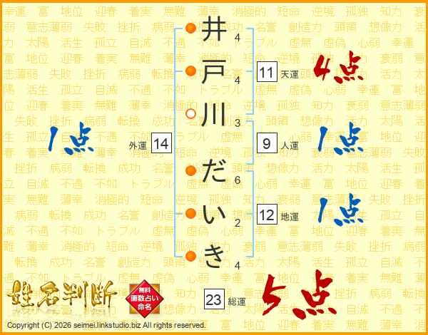 井戸川だいきさんの総運は23画の5点!