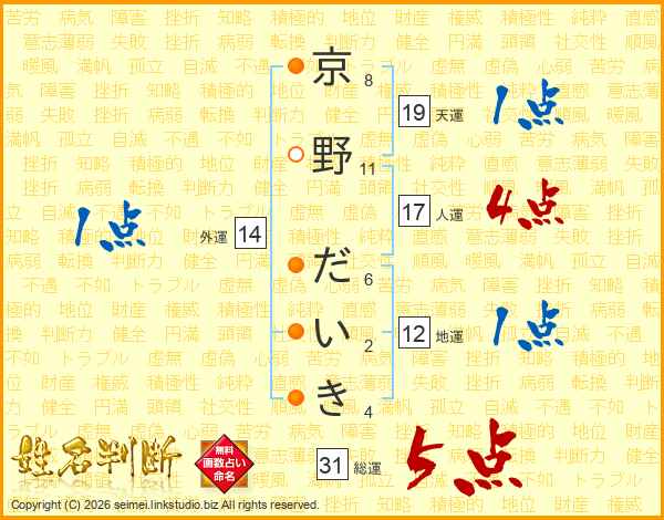 京野だいきさんの総運は31画の5点!