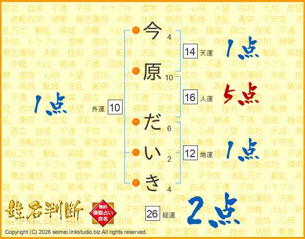 今(4画)原(10画) だ(6画)い(2画)き(4画)