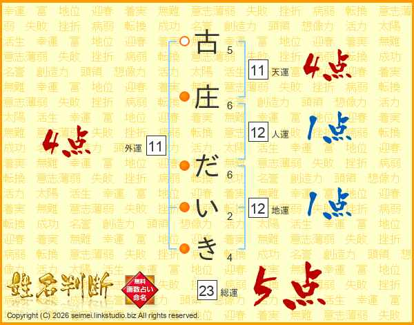 古庄だいきさんの総運は23画の5点!