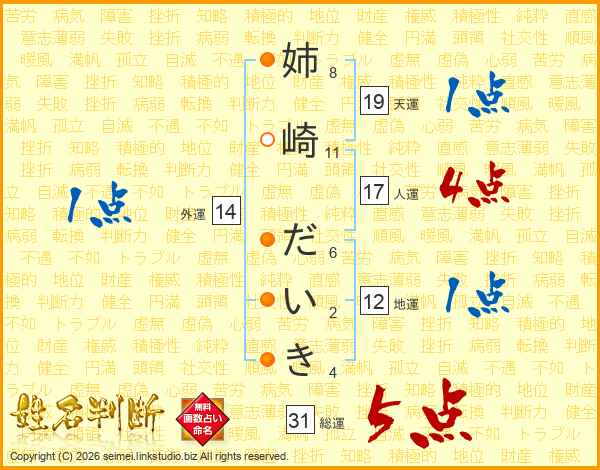 姉崎だいきさんの総運は31画の5点!
