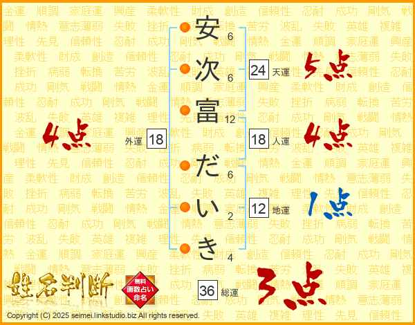 安次富だいきさんの総運は36画の3点!