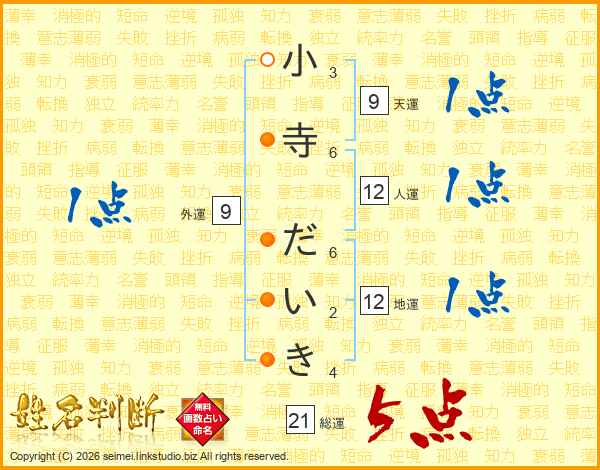小寺だいきさんの総運は21画の5点!