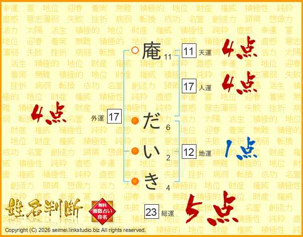 庵だいきさんの総運は23画の5点!
